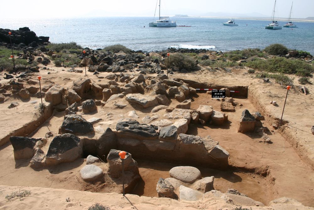 La Isla de Lobos alberga importantes yacimientos arqueológicos que atestiguan la presencia romana en Canarias. Descubiertos a partir de 2012, estos yacimientos incluyen un taller de púrpura, donde se procesaban moluscos marinos para extraer el codiciado tinte púrpura, utilizado en la antigua Roma como símbolo de estatus. También se han hallado estructuras de viviendas, cerámicas, herramientas y restos de pesca, lo que sugiere que la isla fue un importante punto de producción y comercio en las rutas marítimas romanas. Estos descubrimientos ofrecen una valiosa visión sobre la vida cotidiana y las actividades industriales de la época, confirmando el papel relevante de la Isla de Lobos en la historia del Imperio Romano. Aunque el yacimiento no está abierto al público, las excavaciones continúan y destacan la riqueza cultural e histórica de la isla.